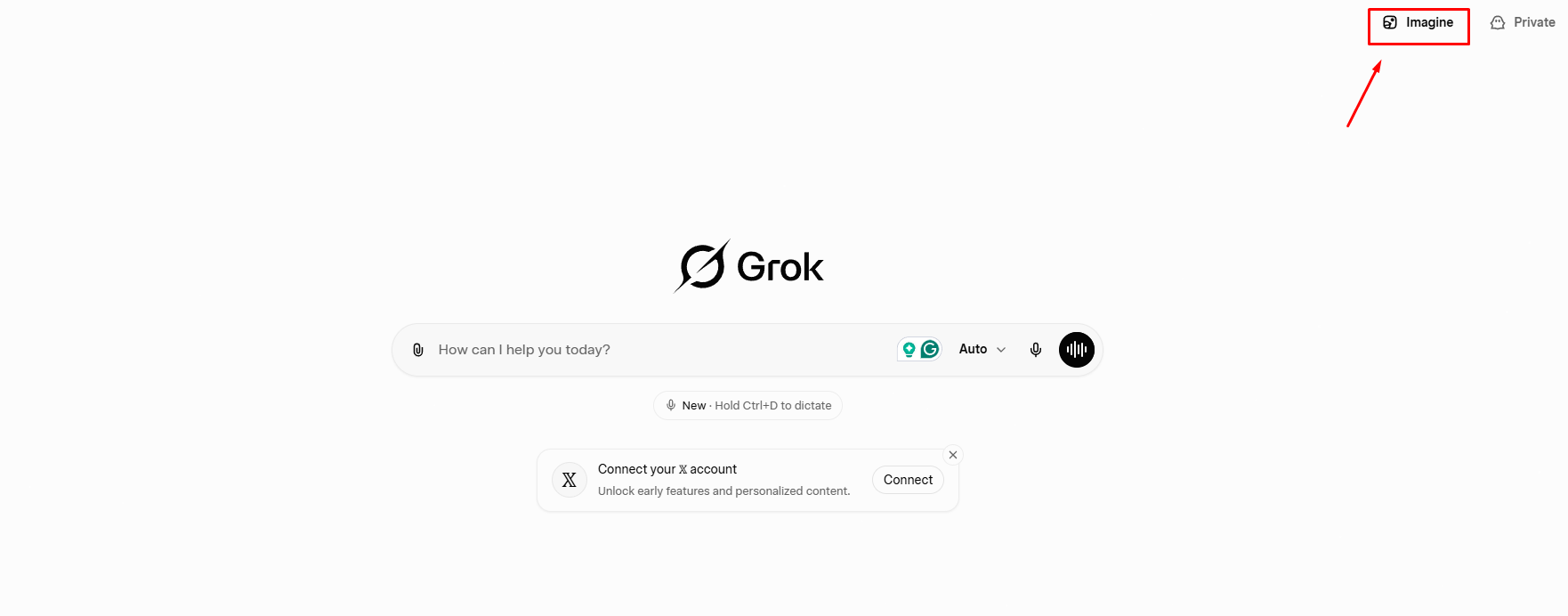 Find the “Imagine” tab, and tap it to open the image/video generation interface.