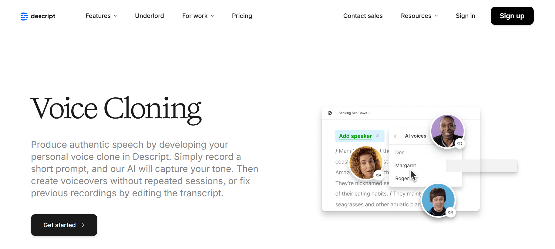 Need video integration? Puppetry has voice cloning duly integrated with its impressive avatar animation. Descript lets you edit videos.