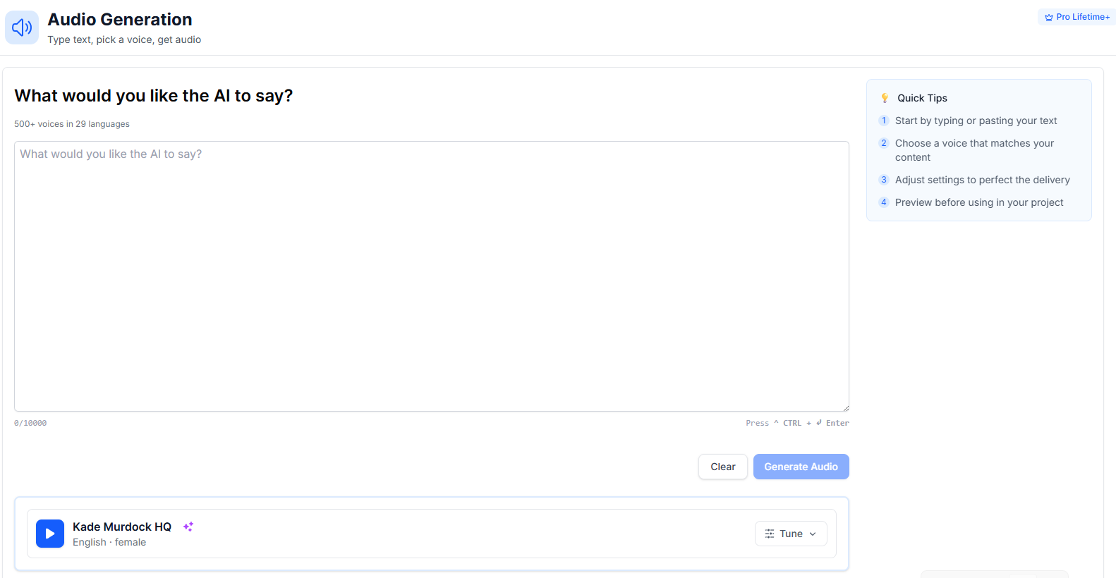 1. Record your voice/upload an audio file in the text-to-speech AI tool.