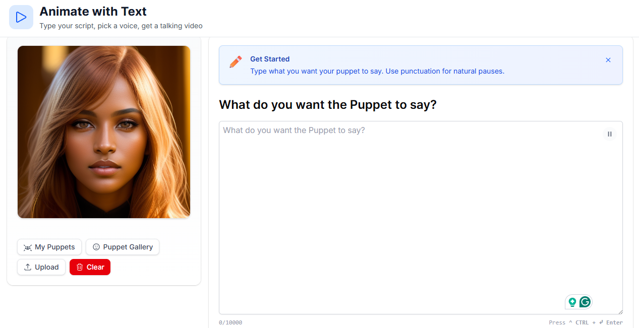 Puppetry AI is an innovative platform for creators, educators, and anyone who wants to generate an AI talking head for social media, presentations, newsletters, and corporate training videos, among others.
