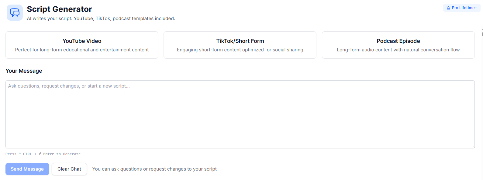 Let the AI script generator generate a script, which you can turn into a video or audio later.